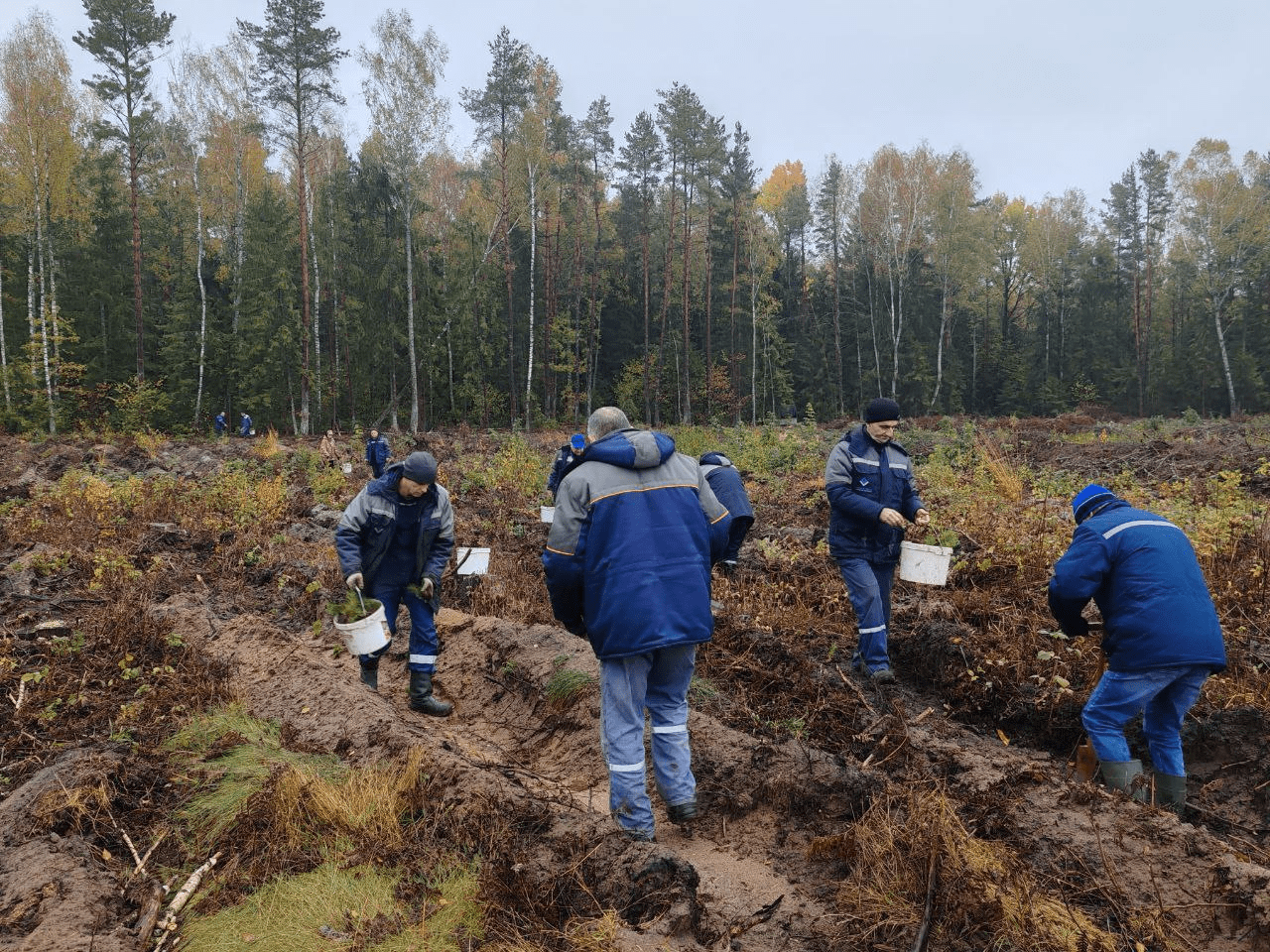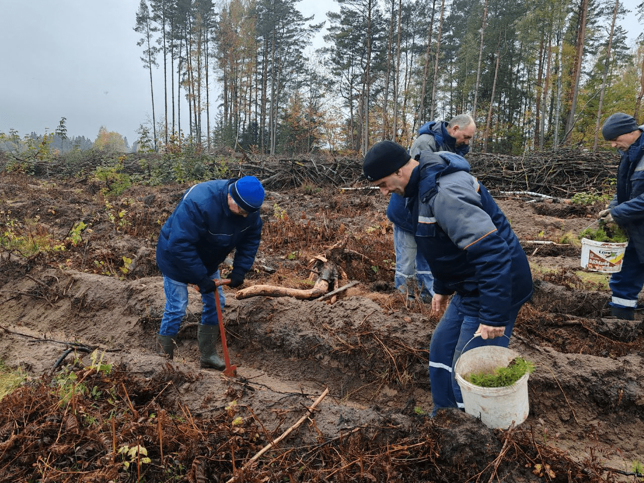 На территории Хотовского лесничества вблизи деревни Островы энергетики высадили порядка 5 000 саженцев сосны.