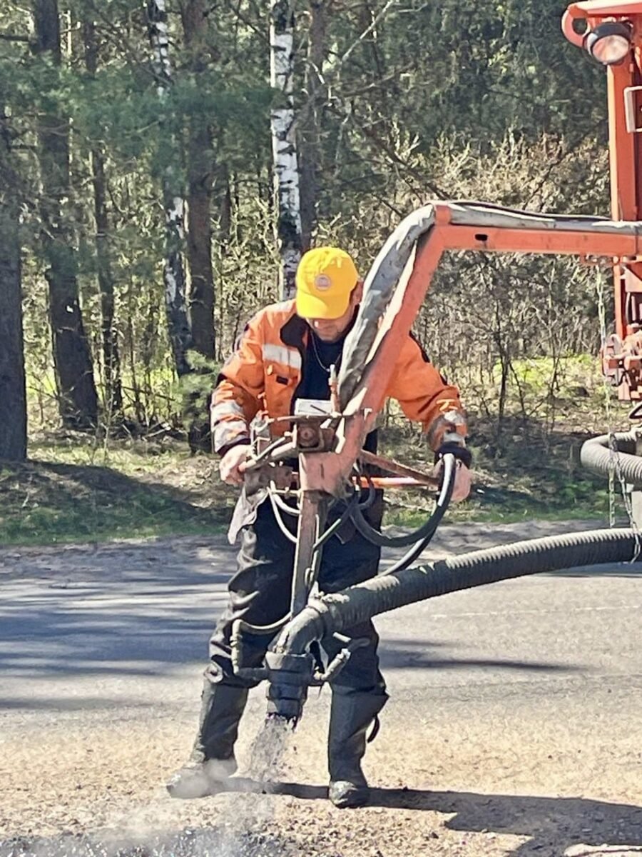 Одновременно с этим техника УП «Столбцовское ОКС» работает на улице Задворьенской в Столбцах. Специалисты проводят ямочный ремонт дорожного полотна, устраняя дефекты и обеспечивая безопасное движение транспорта.