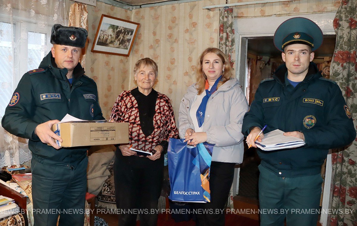 Заместитель начальника Столбцовского РОЧС Александр Полоцкий, старший инженер сектора организации функционирования государственной системы предупреждения ЧС и гражданской обороны Вадим Соловьев и страховой агент представительства Белгосстраха по Столбцовскому району Ольга Кремко посетили дома одиноких граждан в деревнях Опечки, Аталезь и других на территории Шашковского сельсовета.