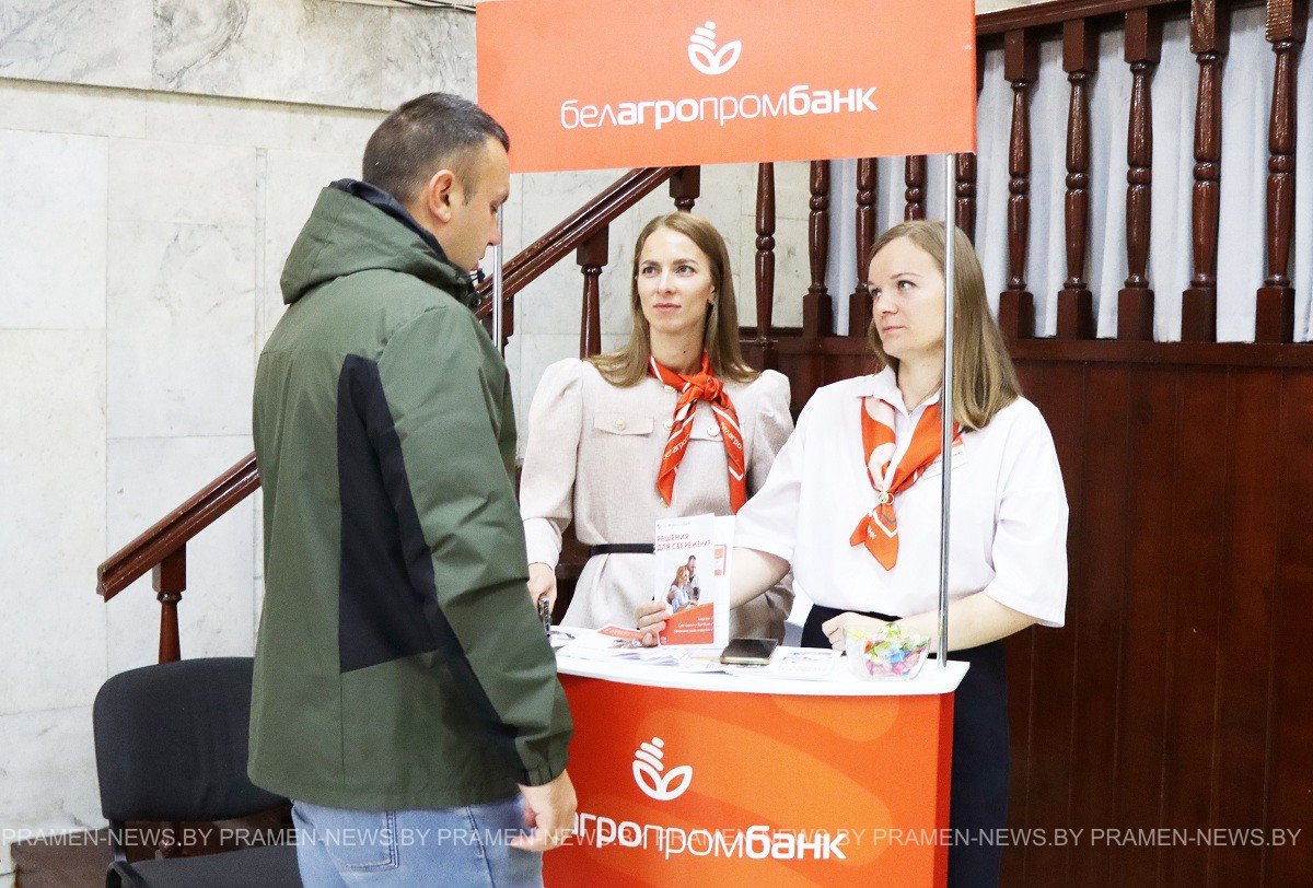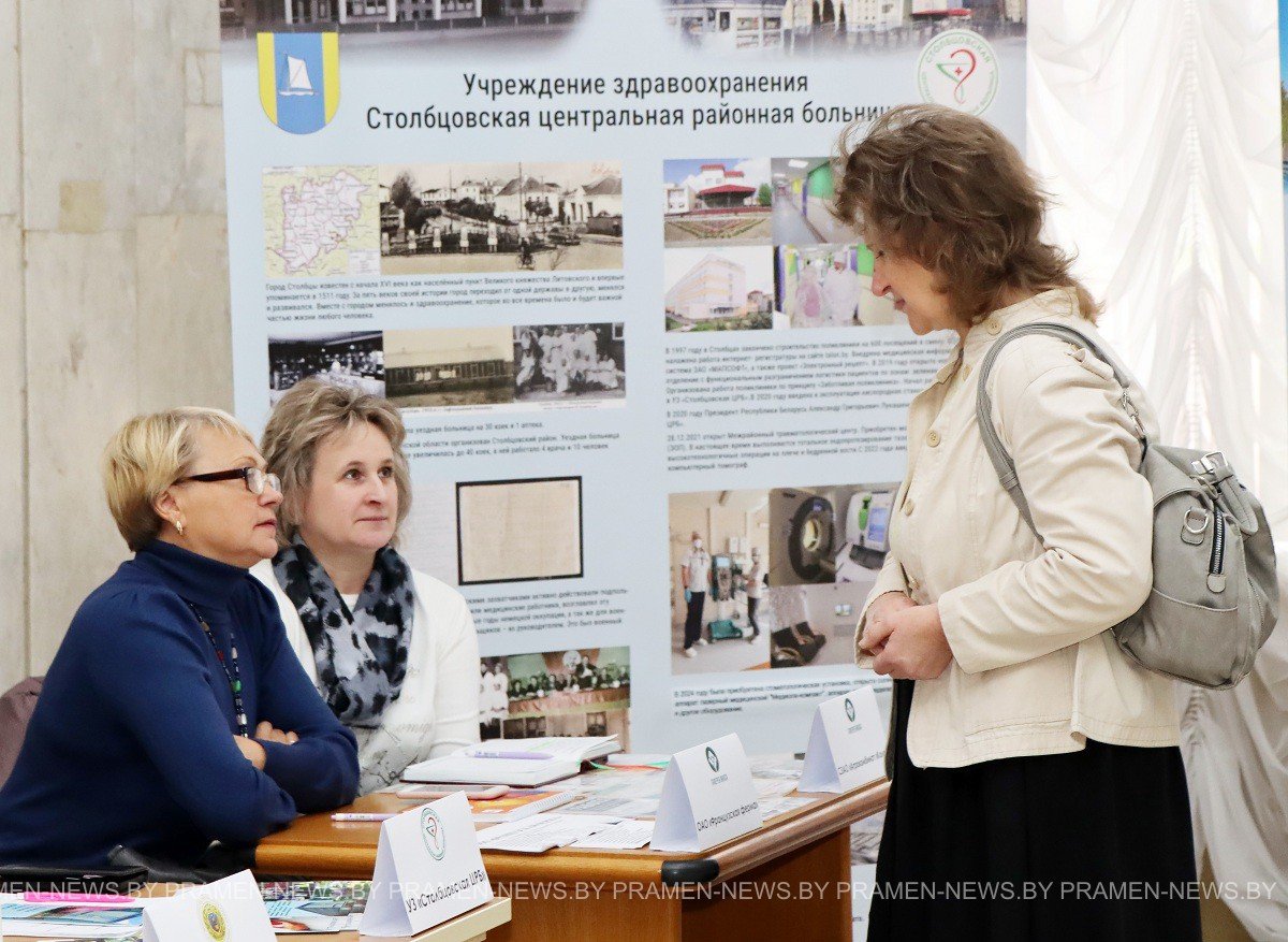 С первых минут работы ярмарки в районном Центре культуры царила атмосфера живого интереса и делового общения. Жители Столбцов и района активно подходили к представителям ведущих предприятий — от сельхозяйственных и строительных организаций до учреждения здравоохранения и социального пансионата.