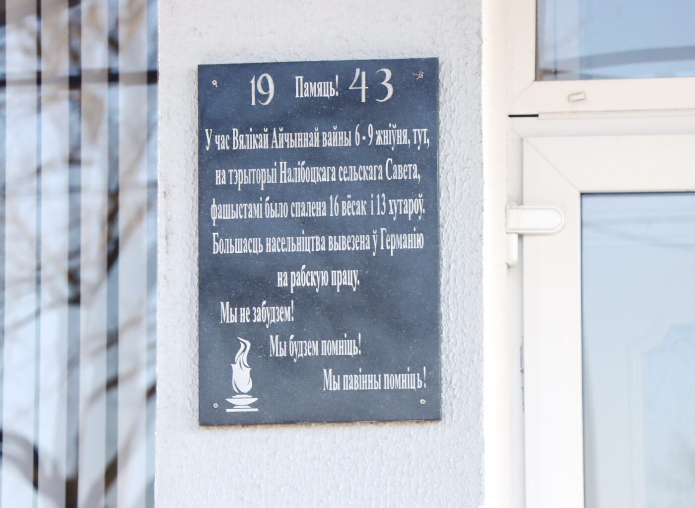 В 2018-м по инициативе местных жителей в Налибоках был установлен гранитный валун с мемориальной доской на белорусском, английском языках и иврите в память об убитых евреях местечка. Во время Великой Отечественной войны на территории Налибокского сельского совета фашистами были сожжены 16 деревень и 13 хуторов. В память о них на здании сельсовета установлена мемориальная доска.