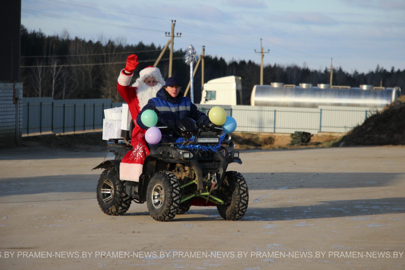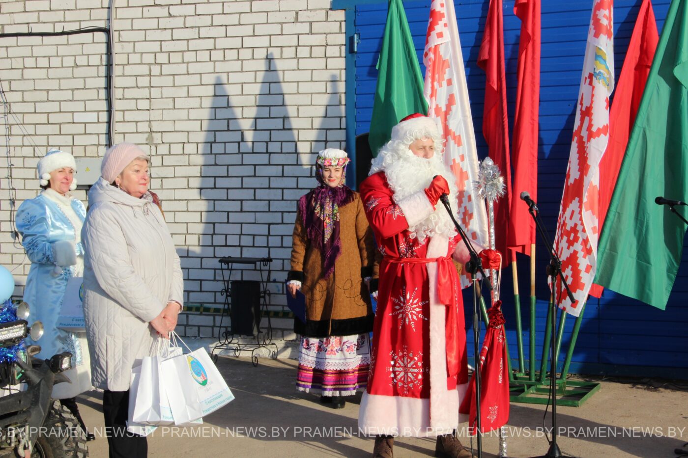 Присоединилась ко всем поздравлениям и председатель райкома профсоюза работников АПК Тамара Колошич, которая вручила руководителю хозяйства сертификаты на дальнейшее развитие материально-технической базы хозяйства и улучшение санитарно-бытовых условий от республиканского комитета Белорусского профсоюза работников агропромышленного комплекса и Минской областной профсоюзной организации. Лидер профсоюза работников АПК отметила, что на протяжении десяти лет в канун нового года в районе начинается традиционная республиканская профсоюзная акция «Наш животновод», которой дали старт. Работники комплекса получили подарки от райкома профсоюза работников АПК, которые вручили Дед Мороз и Снегурка.