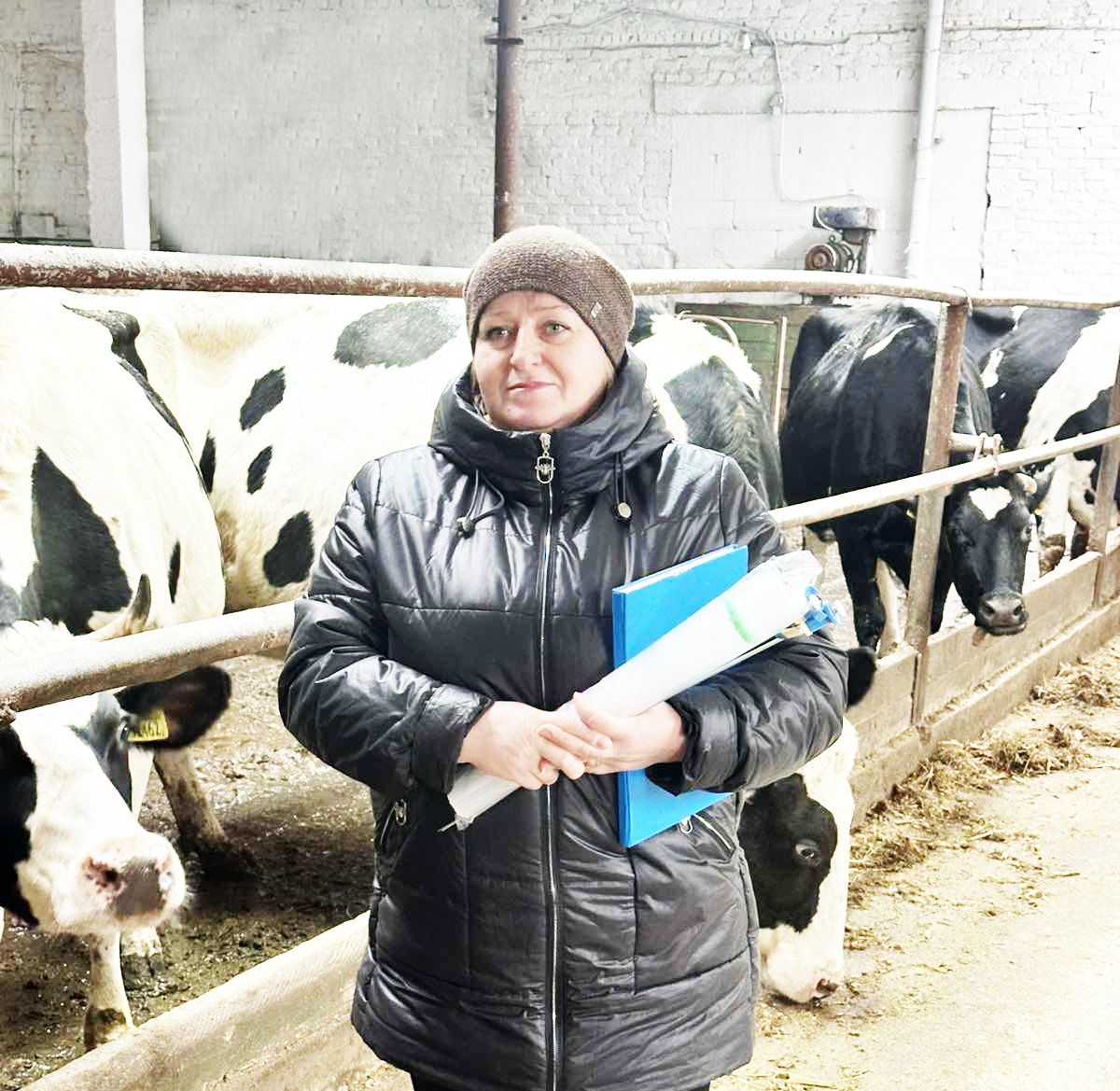 Родом Людмила Михайловна из Могилевской области. Бывший директор общества пригласил ее на работу. Приехала. Понравилось. Осталась, так как и зарплаты здесь хорошие. Второй год работает на МТФ “Ячное №3”. В зоотехническом деле Людмила Михайловна — универсал. Если есть потребность, то она заменит бригадира фермы и лаборанта, напоит новорожденных телят.