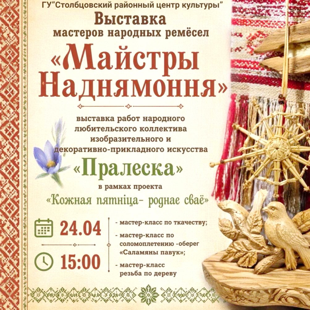 В рамках проекта «Кожная пятніца — роднае сваё» в Столбцовском районном центре культуры пройдет выставка мастеров народных ремесел