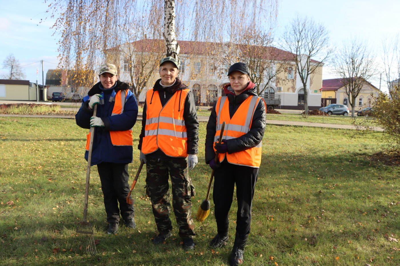 Независимо от погоды, женщины наводят порядок, управляясь с граблями и метлами. Поскольку деревья уже полностью сбросили листву, то впереди — кропотливая работа, сравнимая с генеральной уборкой. Если сделать все как следует сейчас, то чисто и аккуратно будет до весны.