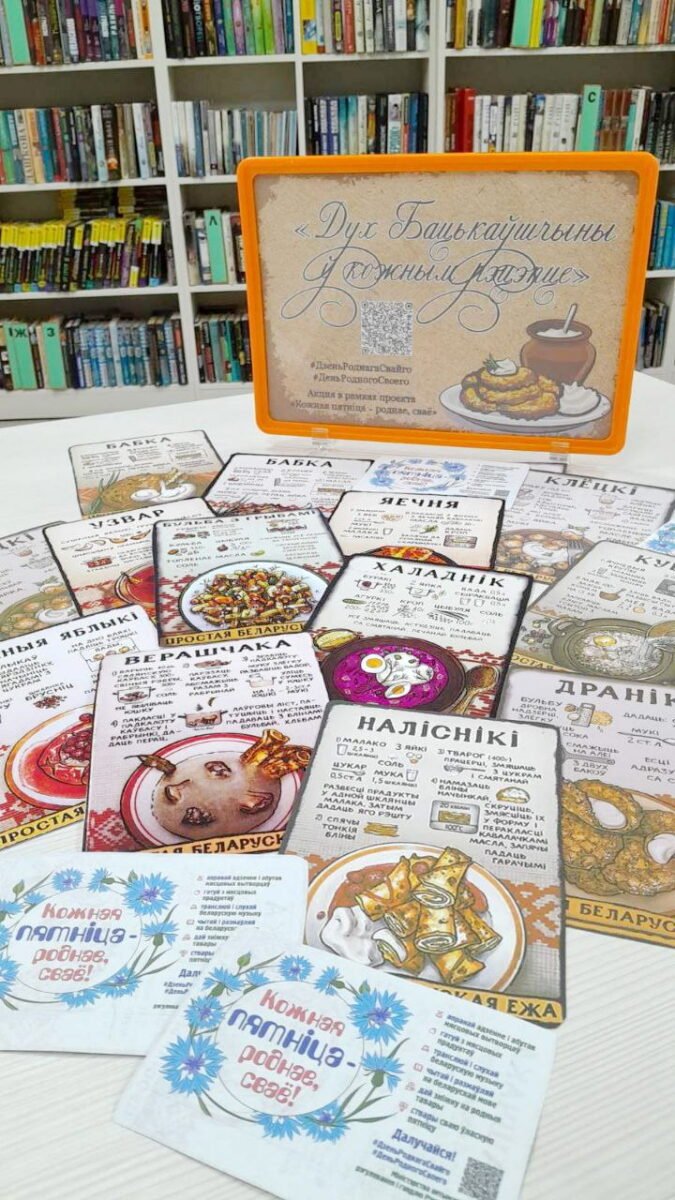 Под названием «Дух Бацькаўшчыны ў кожным рэцэпце » библиотека приглашает всех посетителей познакомиться с традиционными блюдами, передаваемыми из поколения в поколение, сохраняя вкусы родной земли, семейные обычаи и национальную самобытность.