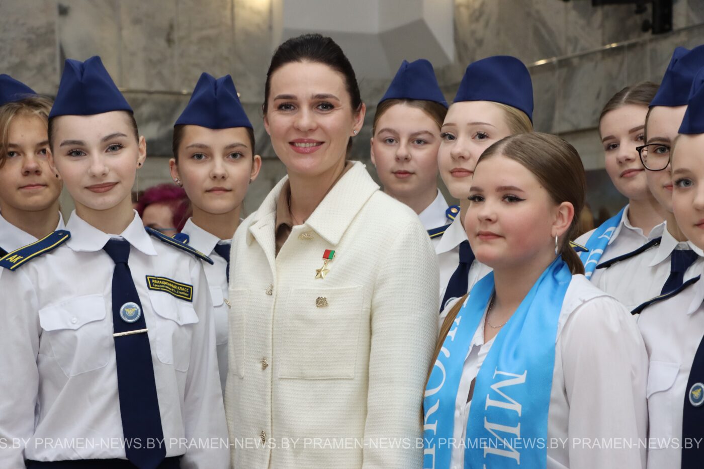 После церемониии закрытия состоялась импровизированная диалоговая площадка первого космонавта Марины Василевской с учащимися авиационного класса СШ № 2 г. Столбцы.