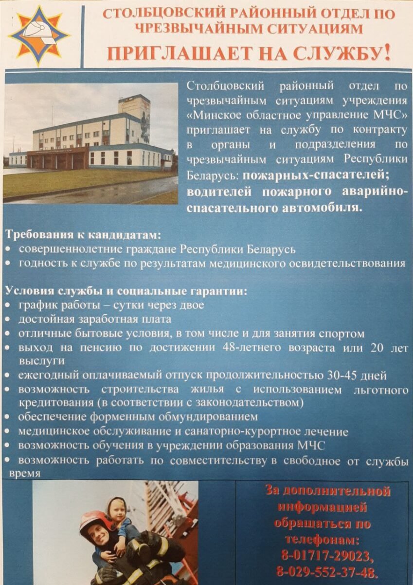 В Столбцовский районный отдел по чрезвычайным ситуациям требуются сотрудники