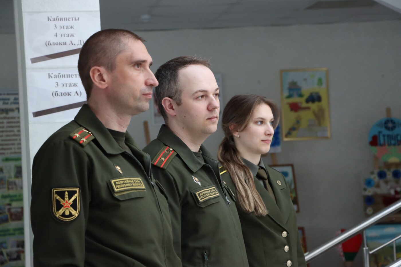 В состав жюри вошли: майор, заместитель военного комиссара — начальник мобилизационной группы военного комиссариата Столбцовского района Николай Самусевич; заместитель командира войсковой части 25819 по идеологической работе Сергей Козловский; заведующий сектором воспитательной, спортивно-массовой работы Жанна Самойленко; директор государственного учреждения «Столбцовский центр творчества детей и молодёжи» Светлана Блашко; курсант IV курса военно-технического факультета БНТУ Вероника Цветкова.