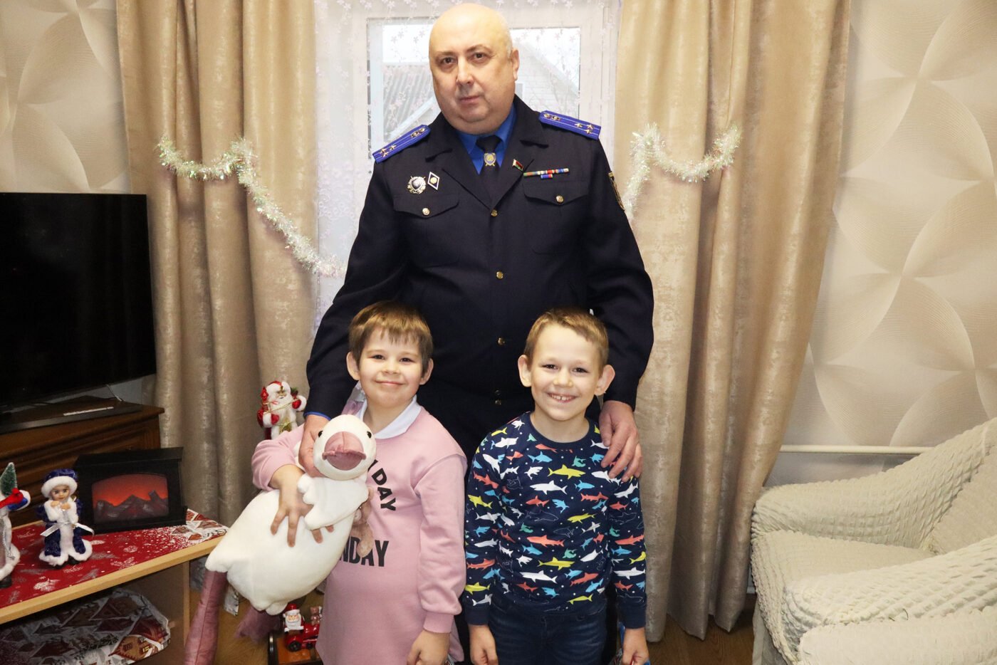 Сегодня следователи посетили приёмную семью Светланы Кульбако из Столбцов. Начальник отдела Валерий Журавский пообщался с детьми – двойняшками Никитой и Александрой, поздравил их с наступающими праздниками и вручил подарки.