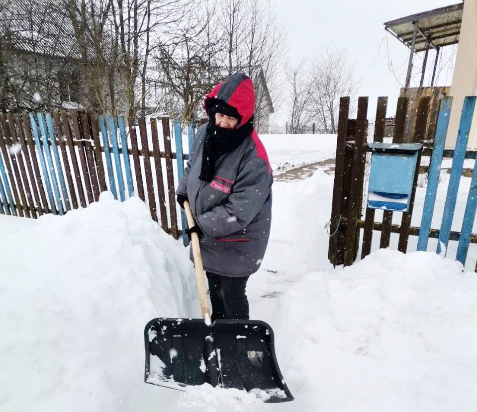Сердца, согревающие зимой: социальные работники Столбцовского ТЦСОН заботятся не только о тепле в домах, но и о чистых дорожках своих подопечных