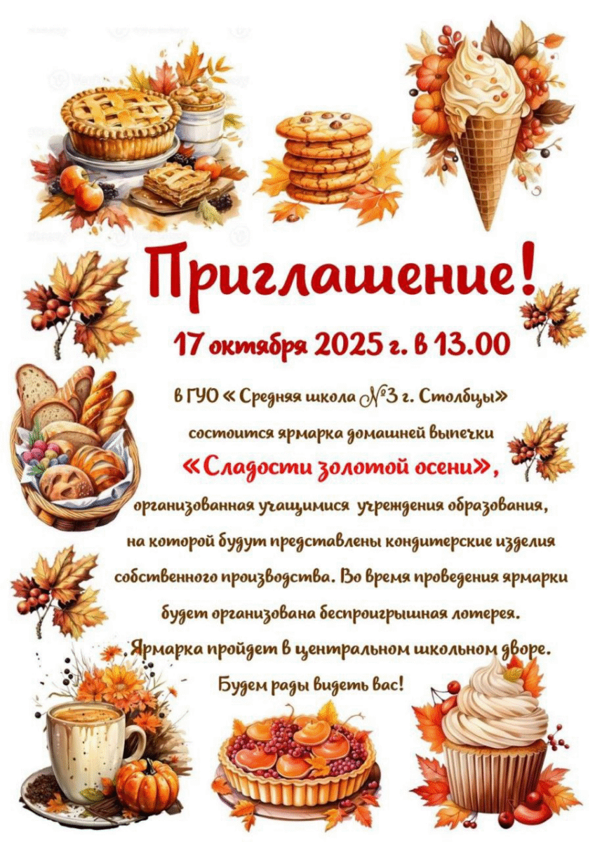 Ярмарка домашней выпечки «Сладости золотой осени» продет в СШ №3 г.Столбцы