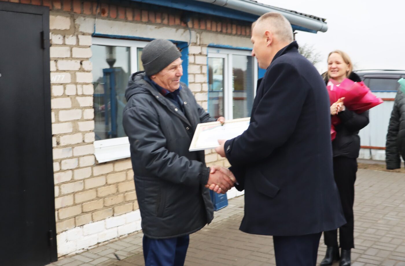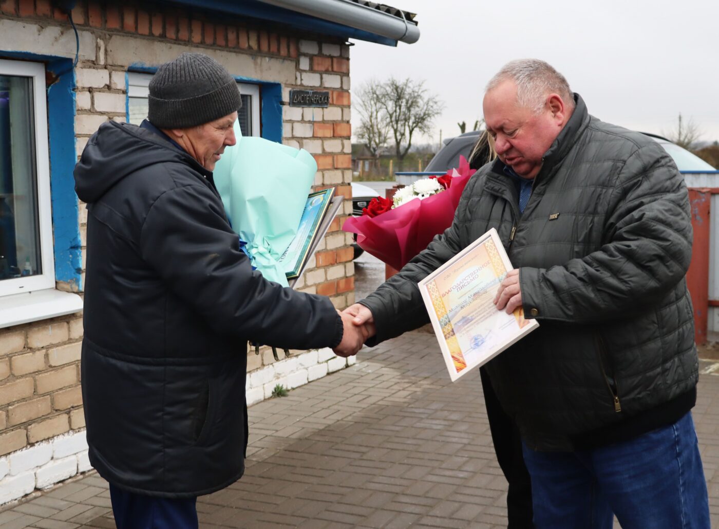К поздравлениям юбиляра присоединились исполняющий обязанности начальника управления по сельскому хозяйству и продовольствию райисполкома Николай Клавшун и председатель Столбцовской районной профсоюзной организации работников АПК Тамара Колошич.