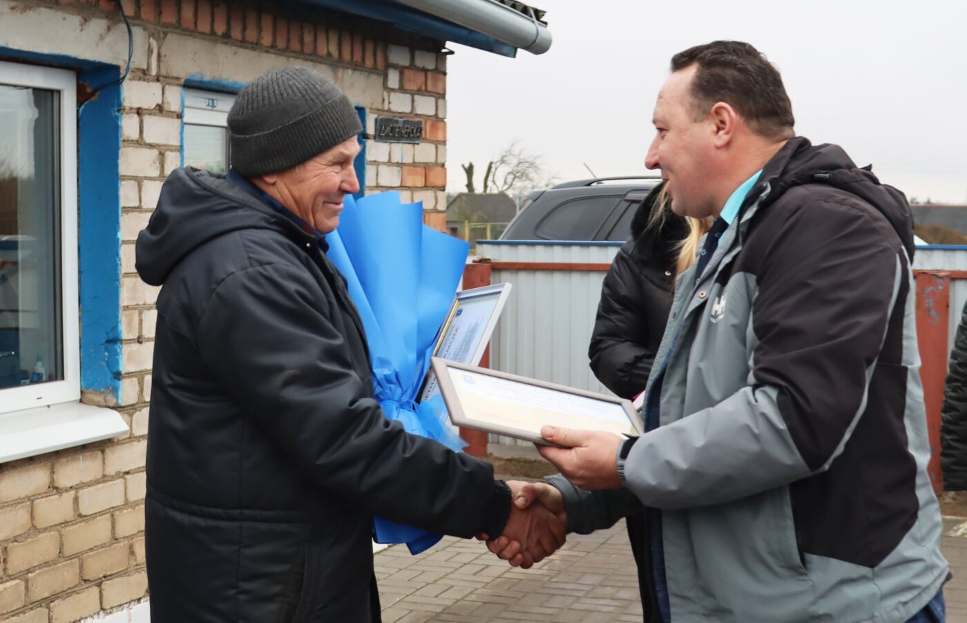 Андрей Атрушкевич вручил Михаилу Мазюкевичу Почетную грамоту райисполкома.