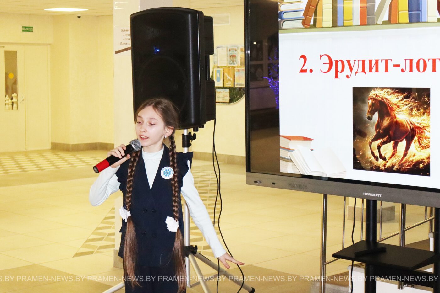 И так, историю вспомнили, гимн игры прозвучал, жюри готово оценивать – можно начинать. Ведущая подготовила шесть туров игры. Вопросы касались различных областей знаний, заставляли участников мыслить, рассуждать и делать выводы. И всё это в течение одной минуты. И несмотря на то, что позади рабочий день. На некоторые вопросы ответы были готовы мгновенно, другие же задания заставляли почесать затылки. От активной интеллектуальной работы становилось всё жарче. Помогала собирать бланки с ответами команд Вероника Трофимчук (или как её ласково окрестили участники «наша ласточка») – ученица 5 «Б» класса средней школы № 4 г. Столбцы. Она же подарила присутствующим замечательный музыкальный номер.