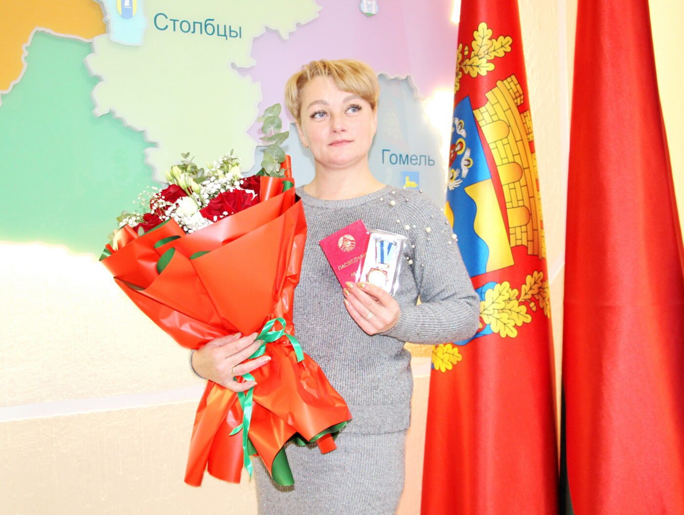 Высокую награду женщине вручил председатель Столбцовского райисполкома Андрей Атрушкевич.